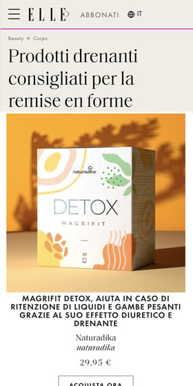 Favorisce il drenaggio dei liquidi corporei, aiutando a ridurre la ritenzione idrica e il gonfiore localizzato, in particolare a gambe, caviglie e piedi. Utile anche in presenza di gonfiore legato al ciclo o all’uso di contraccettivi. Aiuta a ritrovare leggerezza e una silhouette più armoniosa.